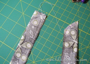 Iron both pieces flat, but make sure the seems run down the middle (see the pictures). Your curved end turns into a nice little triangle tip, which will be easy to slip through the D-Rings when everything’s done.